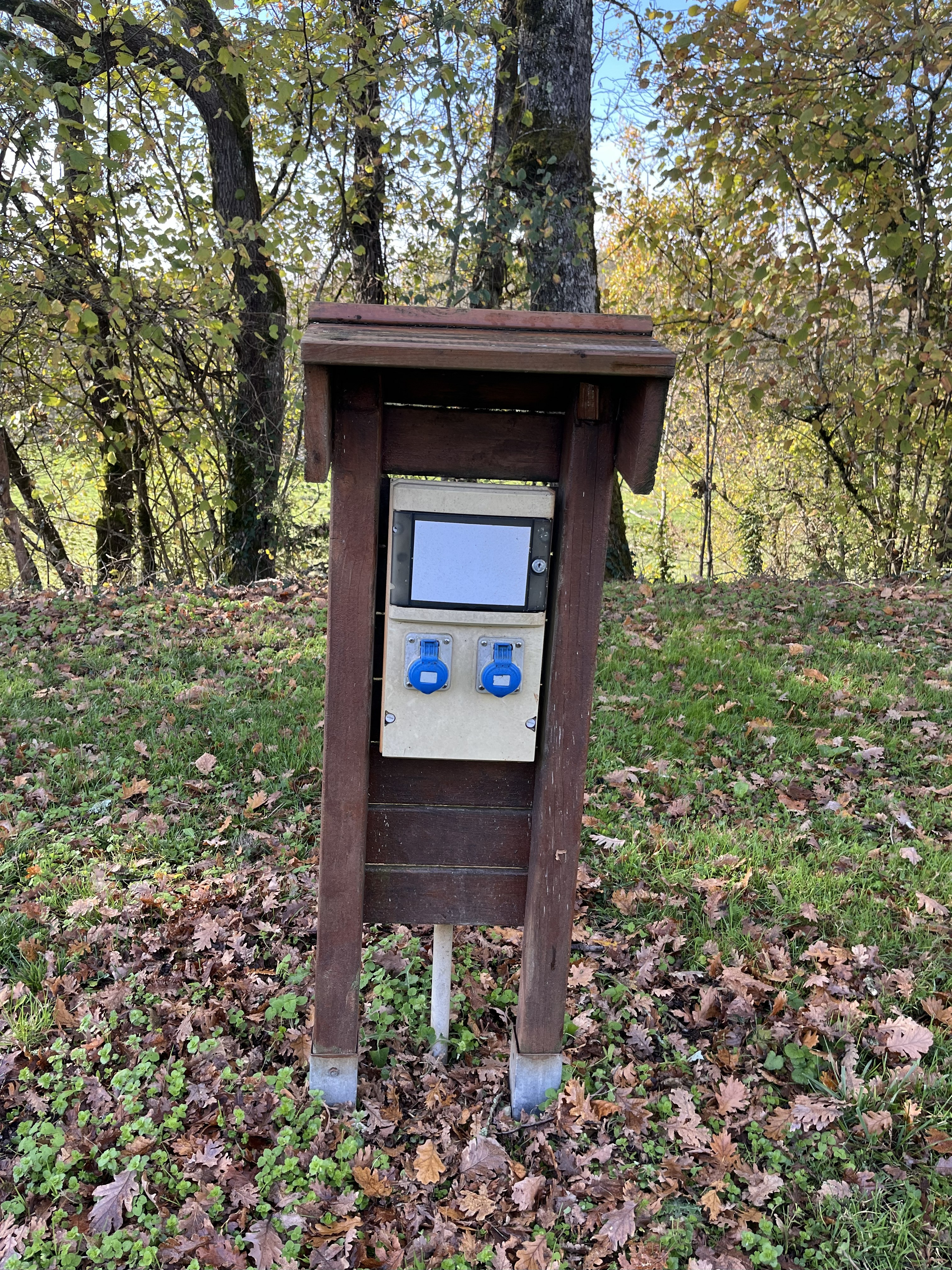 Each pitch has an electric hook-up with a 10Amp supply. Electricity connection is charged at €5 per night