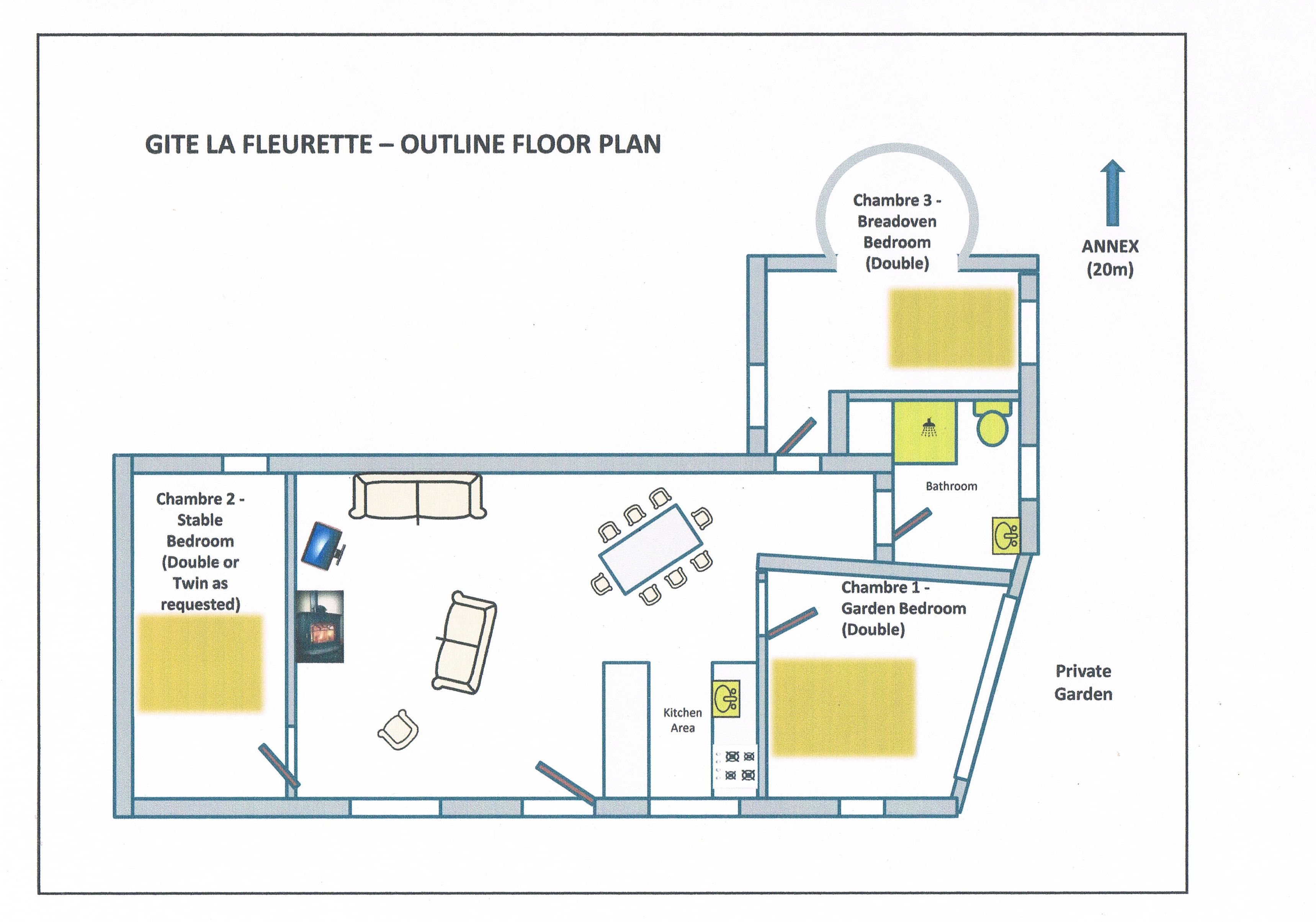 Dans le gîte, il y a 3 chambres qui peuvent accueillir 6 personnes (plus un bébé).